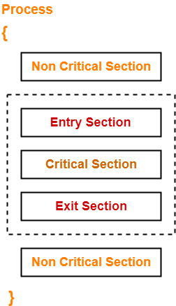 - 여러 프로세스가 공유 데이터를 동시에 사용하기를 원하는 경우 각 프로세스의 code segment에는 공유 데이터를 접근하는 critical section이 존재한다.